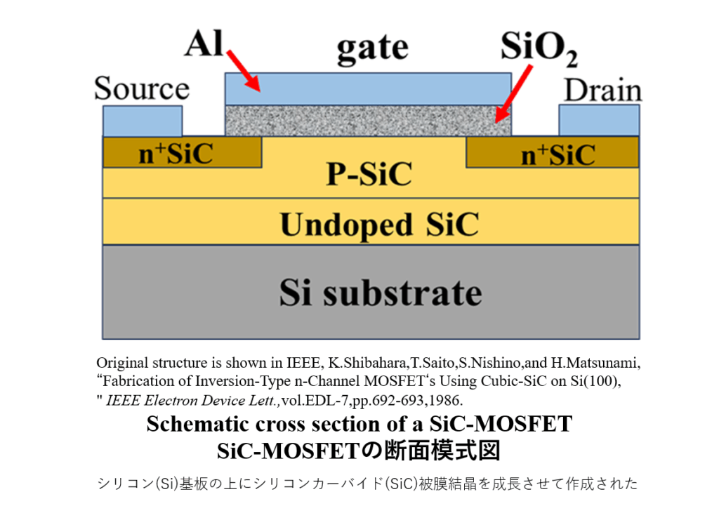 芝原が作製・動作確認したこの反転型MOSFETは世界初のSiCデバイスで, 今日電気自動車などで実用化されているSiCパワーデバイスの先駆けです.