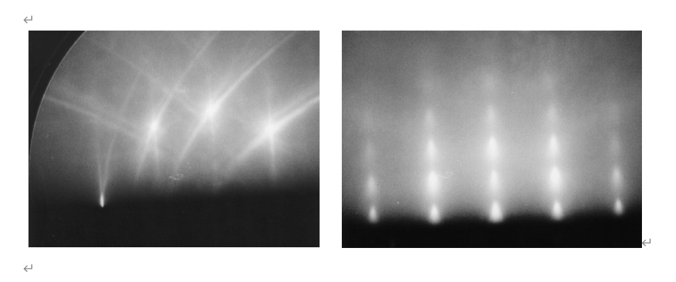 SiC 結晶評価のために行った反射高速電子線回折(RHEED)像の例.学生時代, RHEED の原理の物理的解釈,測定技術,分析力は既に超一流で,研究室の後輩に熱弁をふるった.