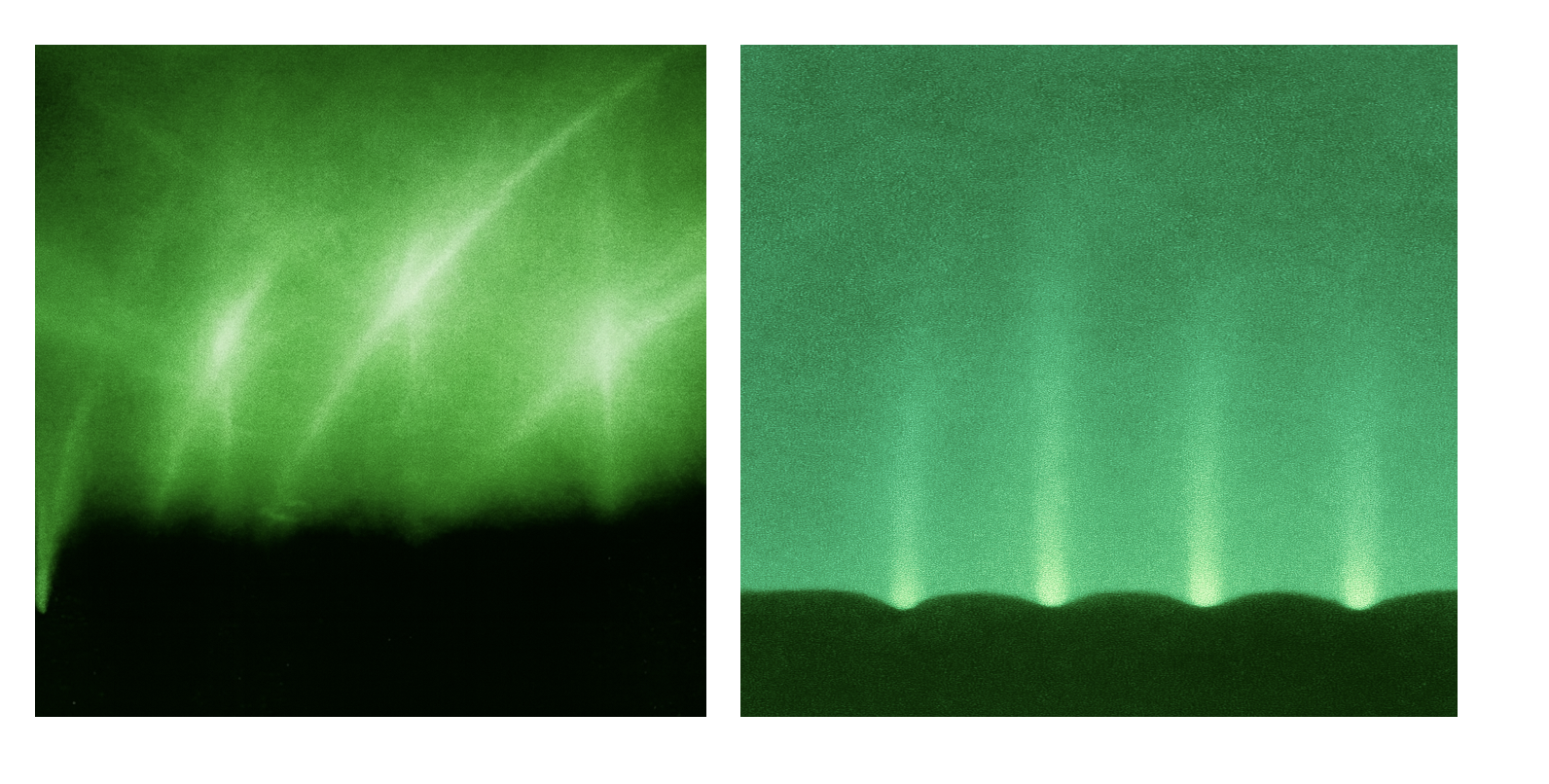 SiC 結晶評価のために行った反射高速電子線回折(RHEED)像の例.
